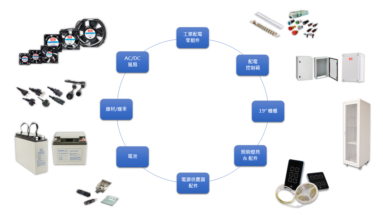 聯源精密提供客戶一站式選購平臺,銷售電源相關零組件品類完整,涵括AC/DC 風扇、軌道式端子臺、工業開關、凸輪開關、金屬開關、線材/線束、控制箱/配線箱、大電流電感、濾波磁珠與相關配件,持續擴增品項。